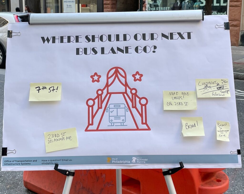 In Philadelphia, 39 organizations participated across Center City, West Philly, Roxborough, Olney, and Tacony. OMP used this as an opportunity to talk with people bus lanes and how they improve the efficiency and comfort of public transit. We hope you came out and talked to us and the other organizations who competed for the Golden Cone awards by activating street space for people!