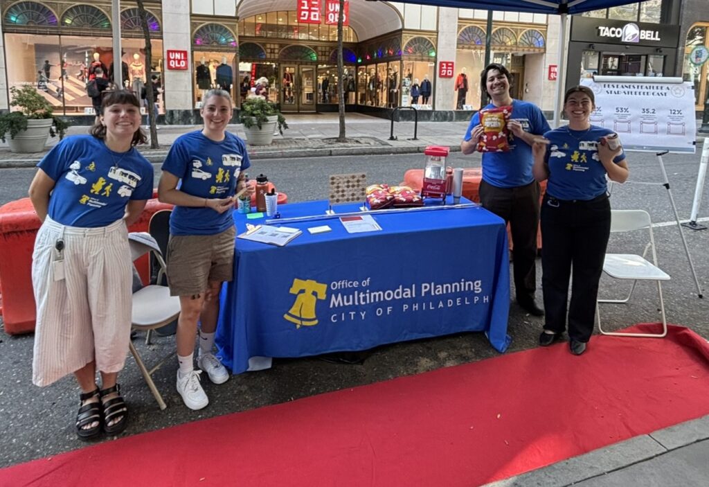 On September 19, the Office of Multimodal Planning (OMP) participated in Park(ing) Day. Park(ing) Day is a global event that is celebrating its 20th anniversary this year. It is an opportunity for people across the world (and Philadelphia) to temporarily repurpose curbside parking spaces and convert them into public parks and social spaces to advocate for safer, greener, and more equitable streets for people.